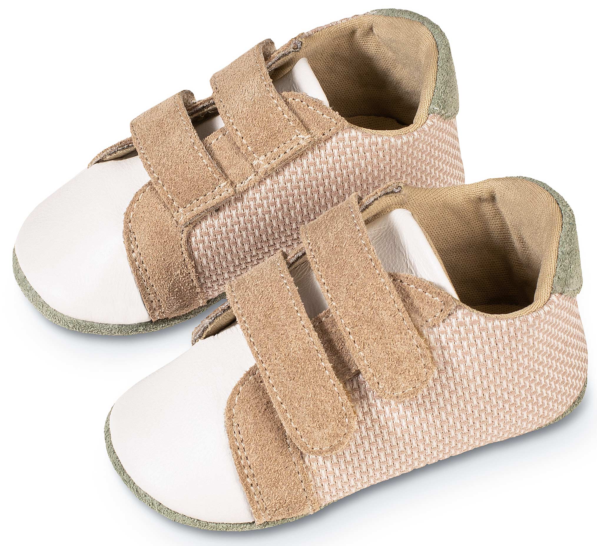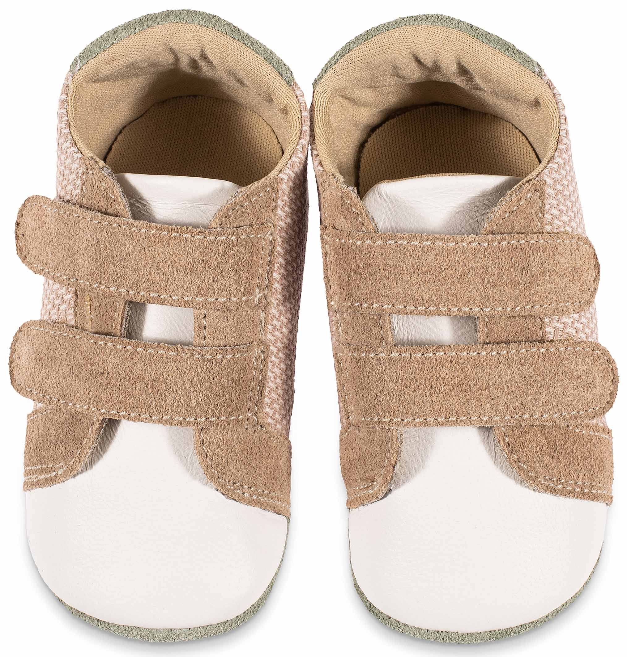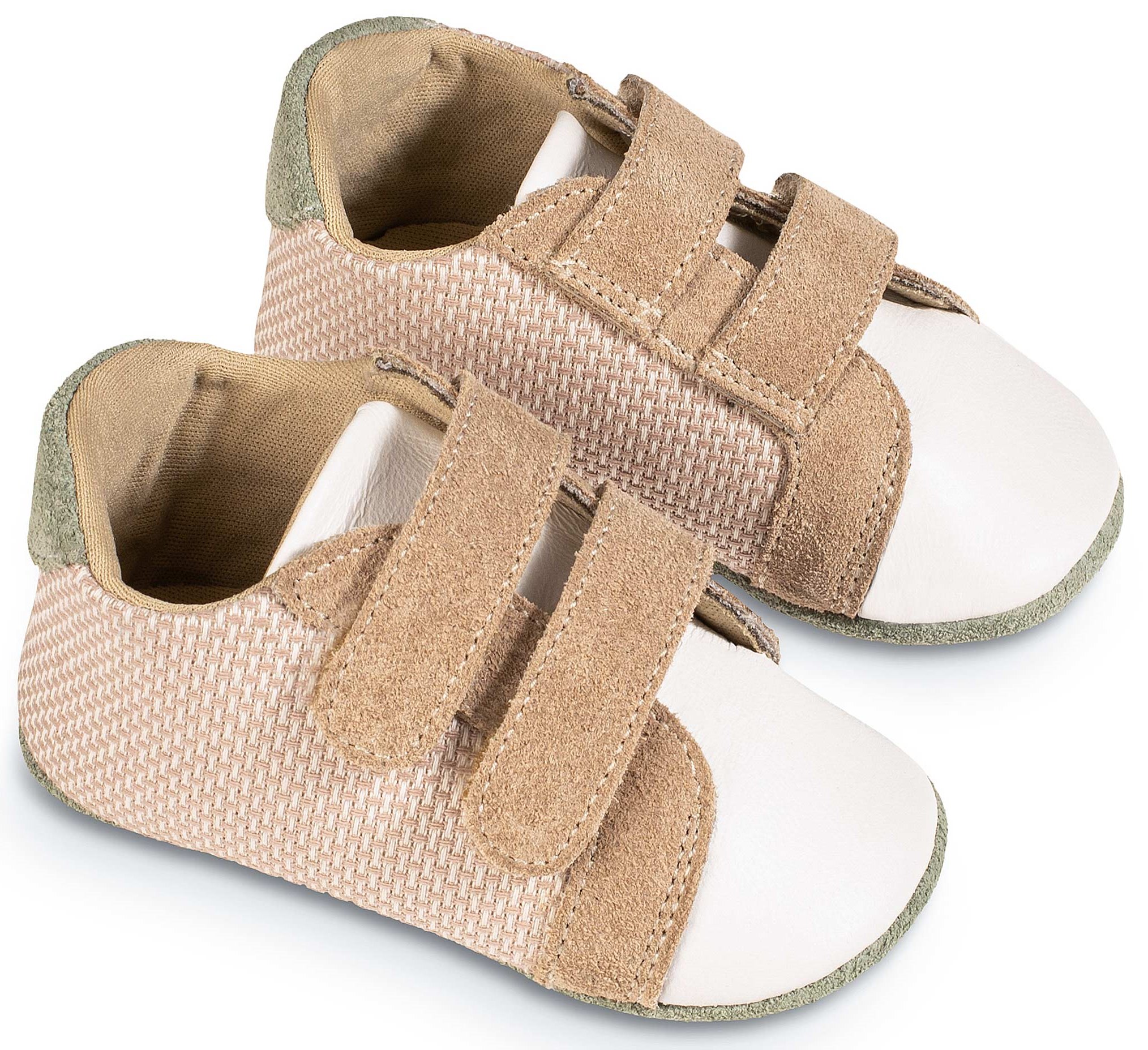 Τρίχρωμο Σνίκερ Διπλή Μπαρέτα Χρατς από Δέρμα και Ύφασμα σε Λευκό Μπεζ Μέντα Χρώμα